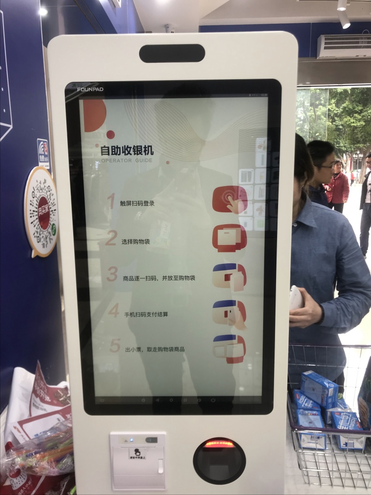 Applications : Self-service checkout, product barcode reading, display of unit price; QR code, and credit card payments are supported; AI loss prevention.